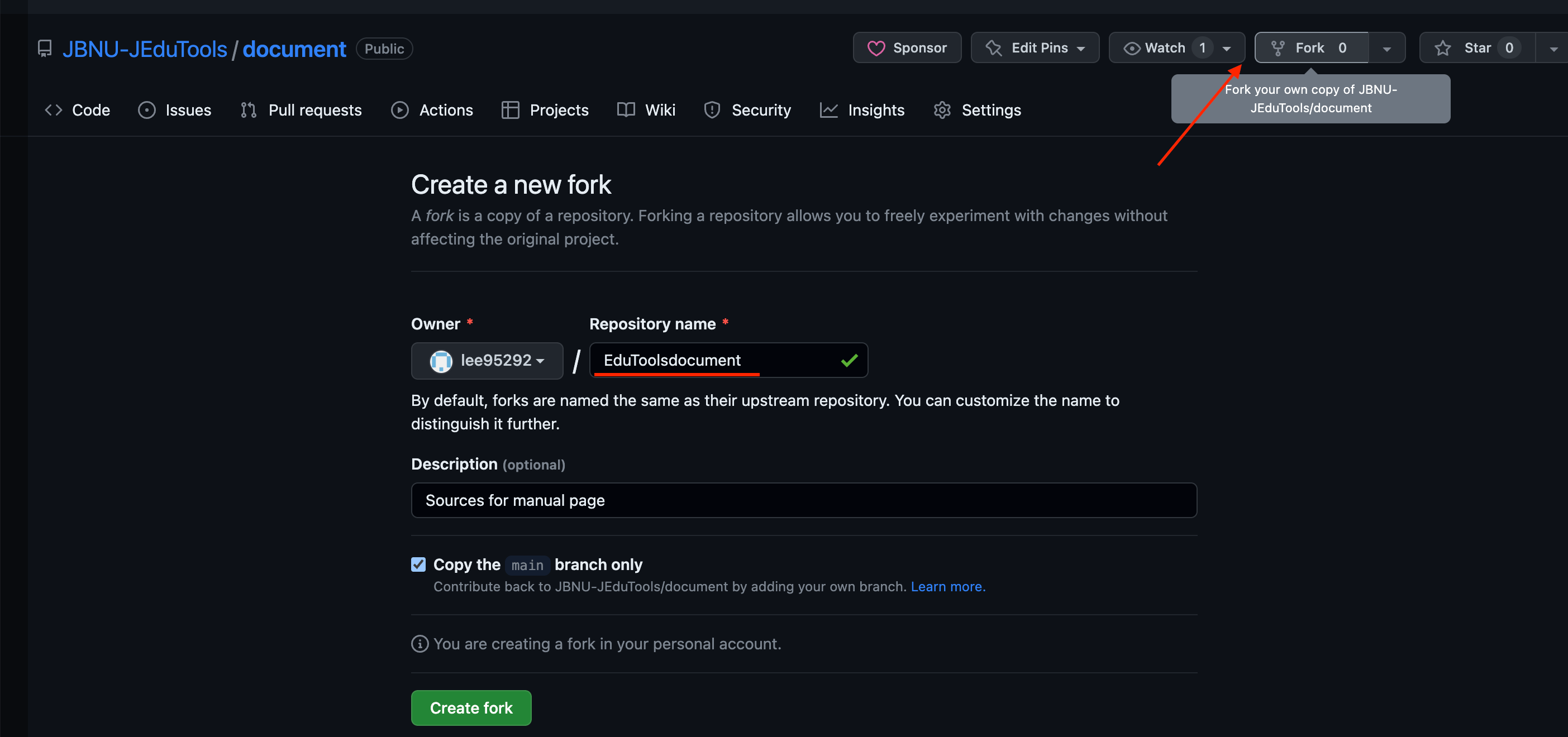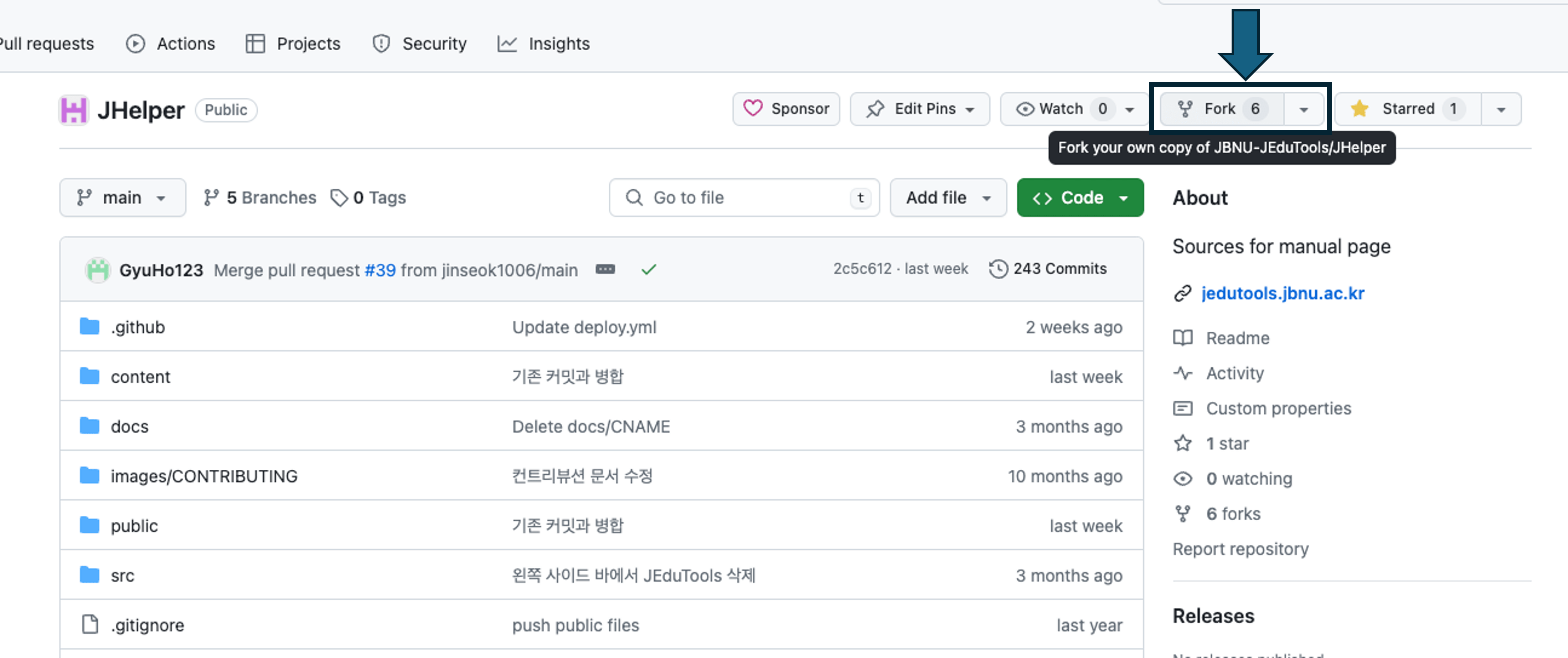 2.1) JHelper 저장소를 포크하여 개인 저장소로 복제합니다.