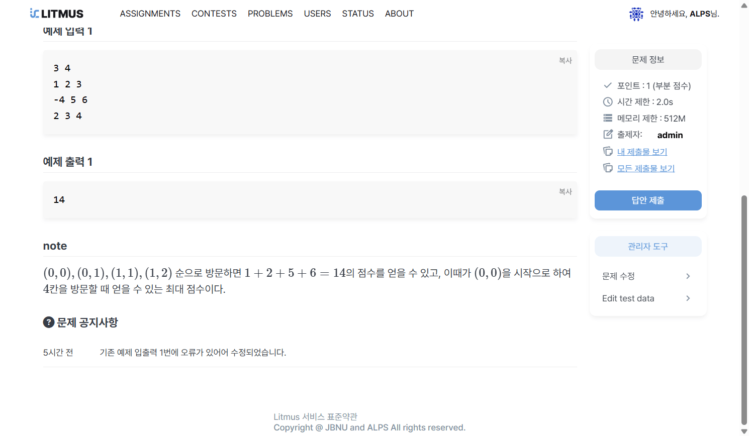 - 비공개: 문제가 과제/대회에 포함된 경우 참가자들이 문제를 확인할 수 있습니다.